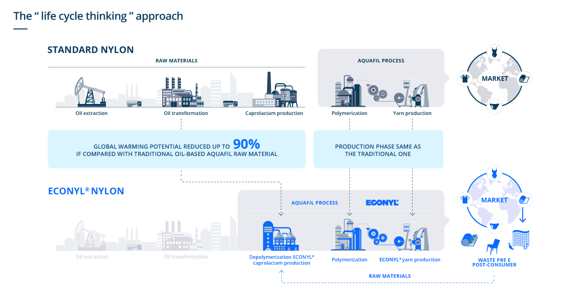 Aquafil have developed a proprietary system for collecting waste made of nylon. Otherwise, it would take many years for them to completely break down into harmful microparticles.