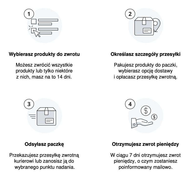 Zobowiązujemy się do rozpatrzenia reklamacji w terminie do 14 dni od otrzymania przez nas przesyłki zwrotnej, jeżeli nie będzie to możliwe to skontaktujemy się z Tobą.